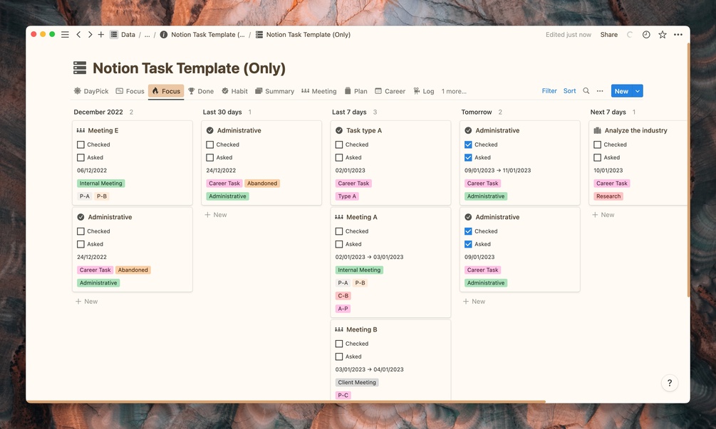 A template for all your tasks, calendar events, and habits. Plus, I have also written an article to show you how to use it in details.